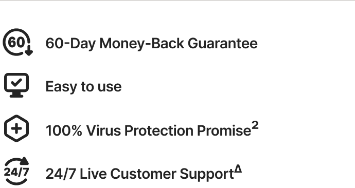 2 Es gelten bestimmte Einschränkungen. Für den Virenentfernungsservice benötigen Sie ein Abonnement für Gerätesicherheit mit Antivirus-Funktionen und automatischer Verlängerung. Weitere Einzelheiten finden Sie unter Norton.com/virus-protection-promise.